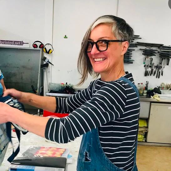 Shirley started Handprinted as a part time venture in 2003 alongside teaching printmaking in an Adult Education college. 20 years ago now - where did that time go? She looks after the business side of Handprinted, stock control, finance, booking tutors, teaches some of the classes in the studio and packs some of the orders.