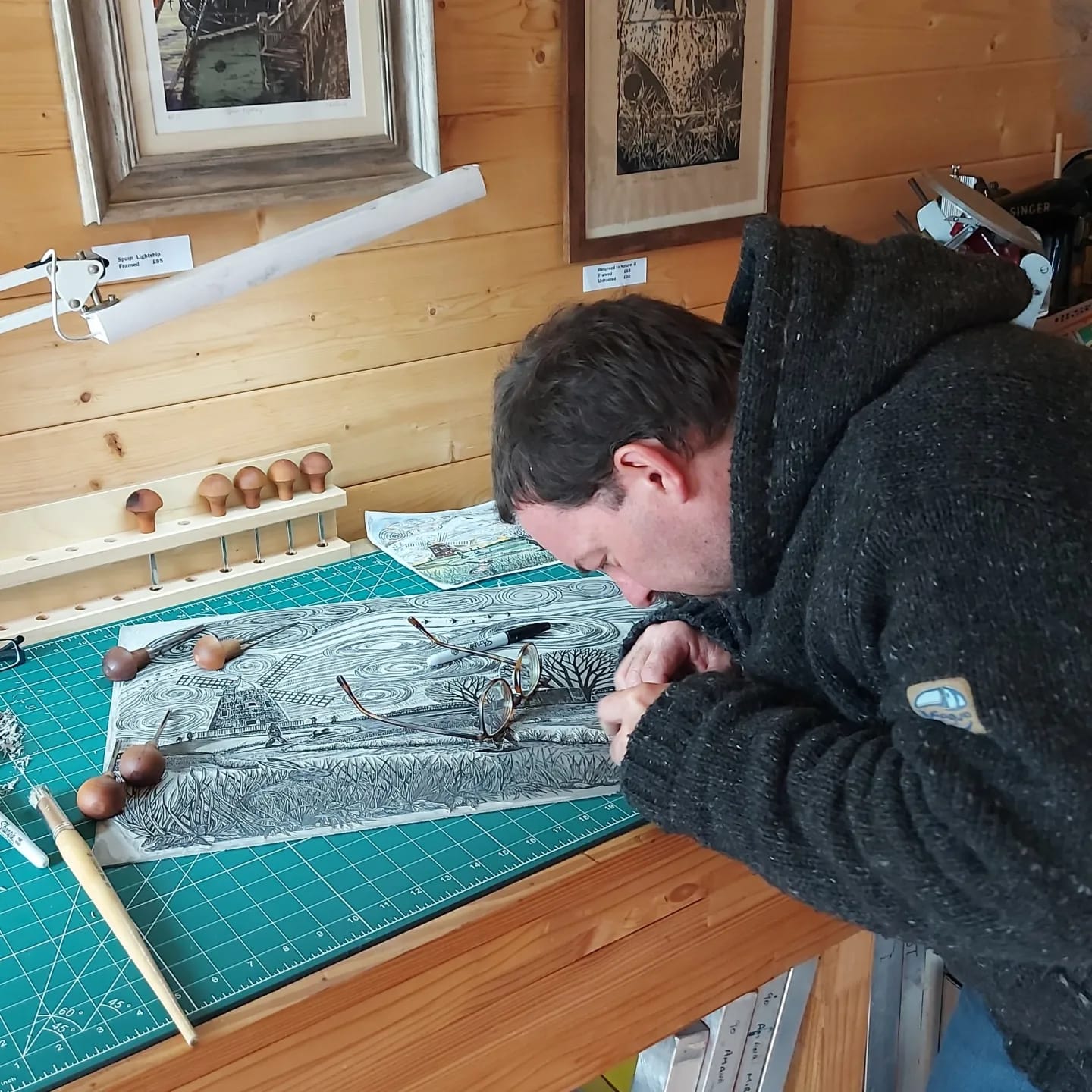 Jez is a lover of linocut and drypoint and has an Esty shop theartfulprinter where he sells his wares. In his spare time, he is a keen bird nerd and can often be spotted with this camera and binoculars around the harbour and local area.