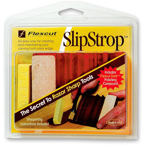 Includes SlipStrop, Flexcut Gold Polishing Compound and sharpening instructions.