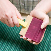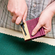 The Flexcut Slip Strop has been specially moulded to allow for polishing and deburring of the hard to reach areas on the inside of V tools and gouges and well as the outside edge bevel.