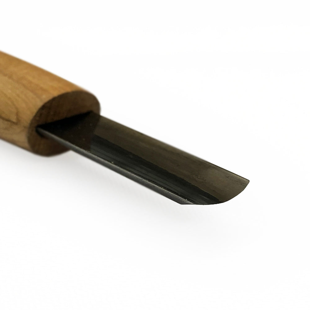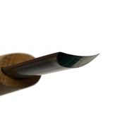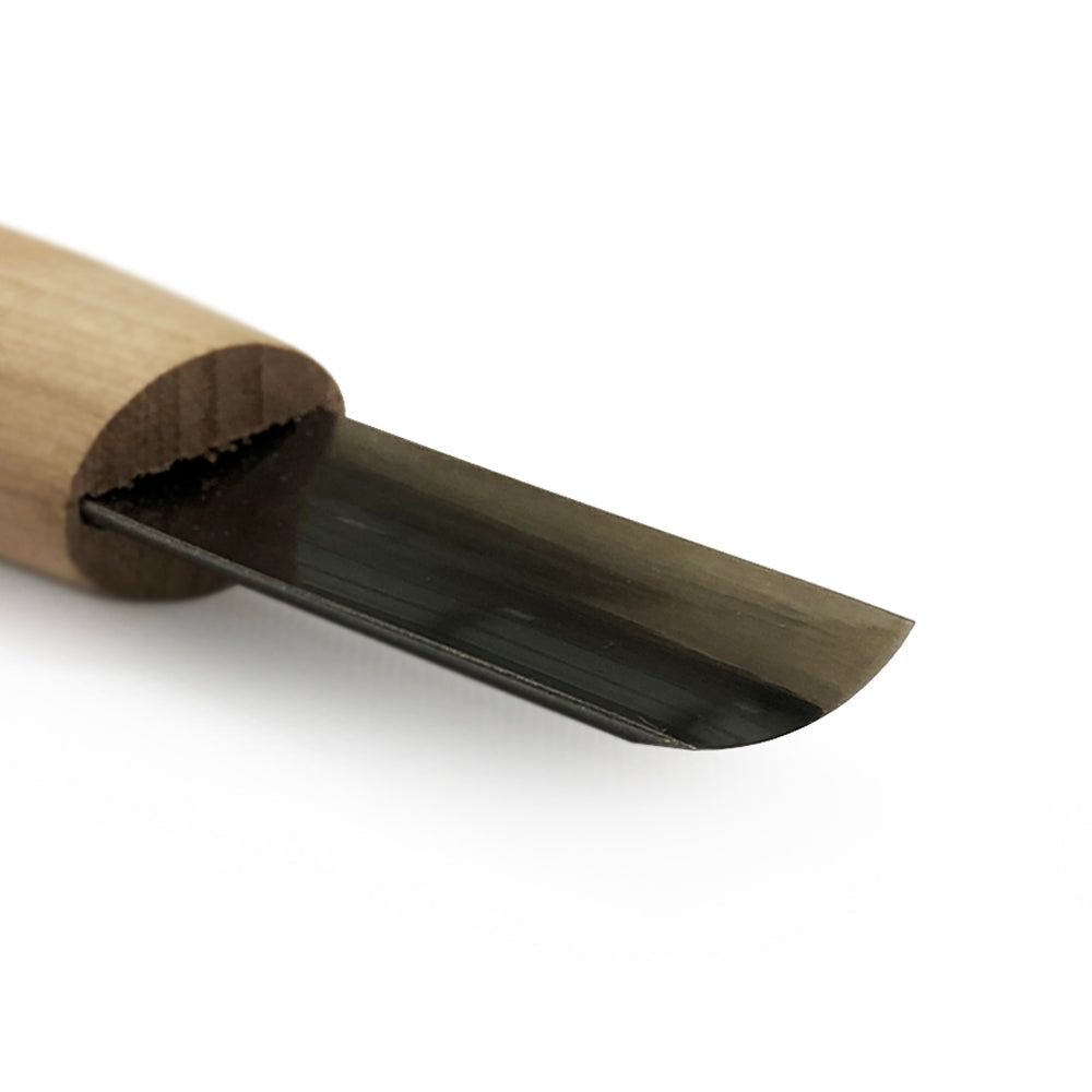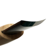 A shallow gouge used for gentle hollowing or creating concave and convex surfaces. Laminated steel blades and are made from a base layer of hardened blue paper steel which forms the cutting edge with a softer steel forged over the top. This means the blue paper steel can be much harder allowing it to take an exceptionally fine edge.