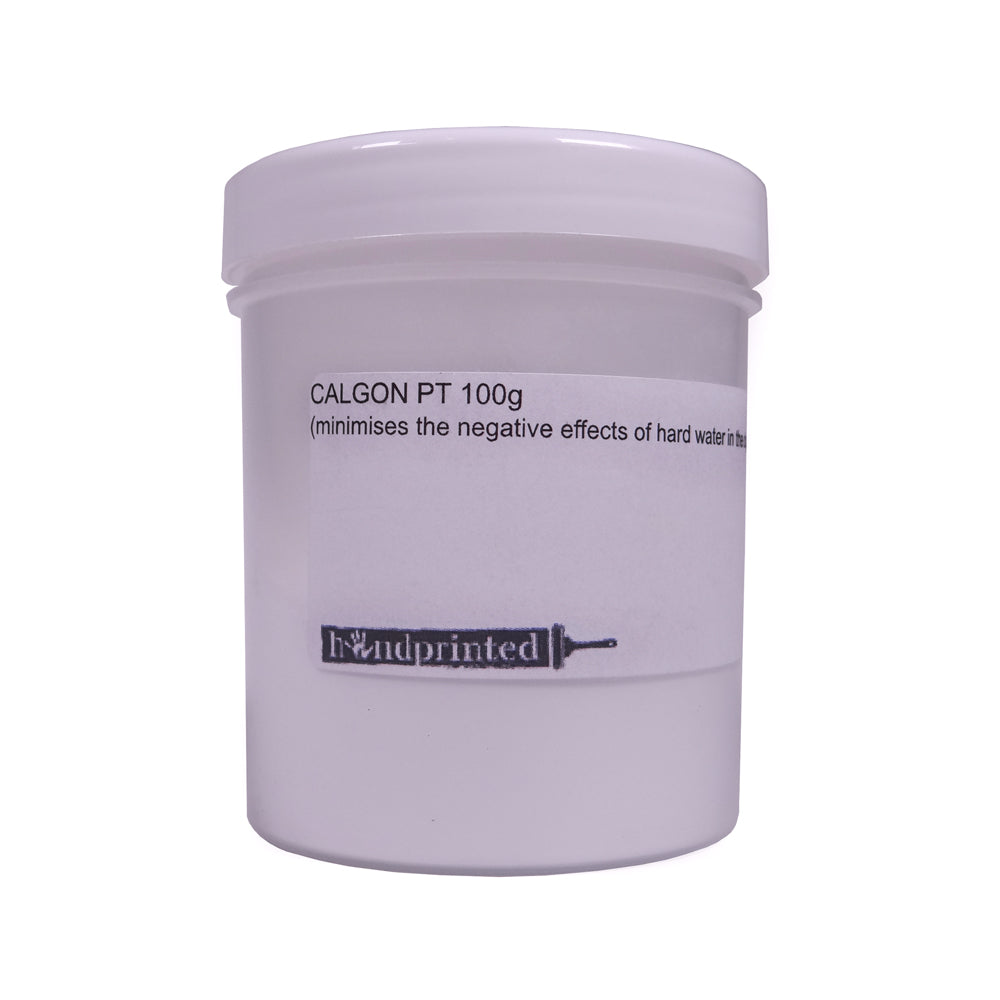 Calgon PT is a water softener which will minimise the negative effects of hard water when dyeing (especially useful with Procion MX dyes). 100g
