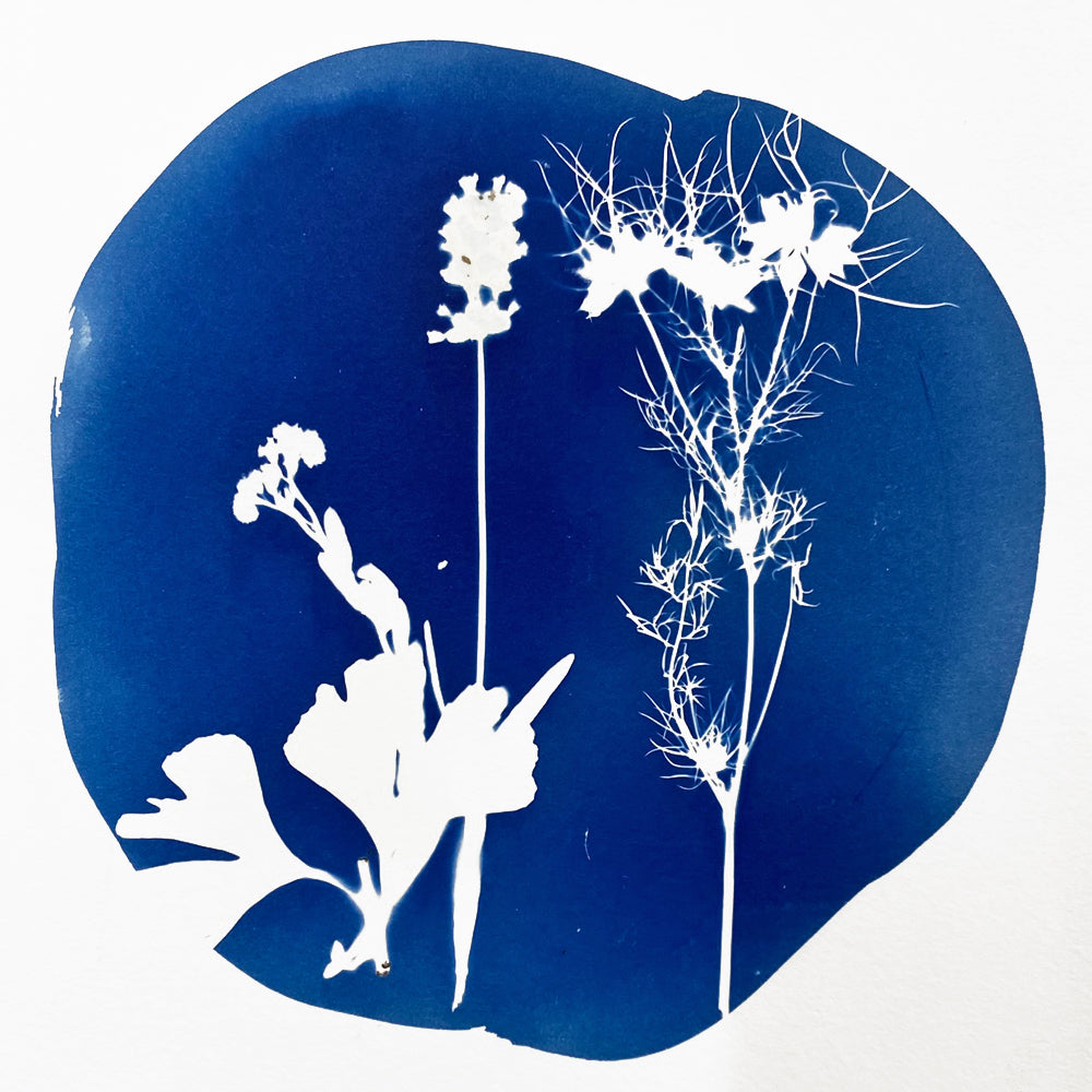 Cyanotype is an antique photographic process of producing Prussian blue monochromatic prints. Cyanotype is a remarkably simple process that employs two inexpensive chemicals and sunlight/UV. Prints can be made on any natural fiber: paper, cotton, silk, wool, wood, etc.