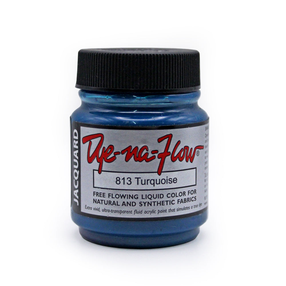 Dye-Na-Flow is a free flowing, concentrated liquid colour for use on any untreated fabric. Colours are intermixable. It will spread on fabric until it is thoroughly absorbed and even. Every fabric has a different flow and spread. It is magical on silk, but it works on any type of fibre, natural and synthetic. On silk it has an even lustre. On velvet it is rich. On cotton the colour does not alter the feel of the fabric. Dye-Na-Flow is incredibly versatile.