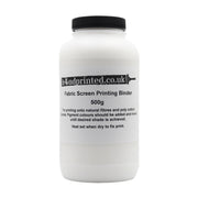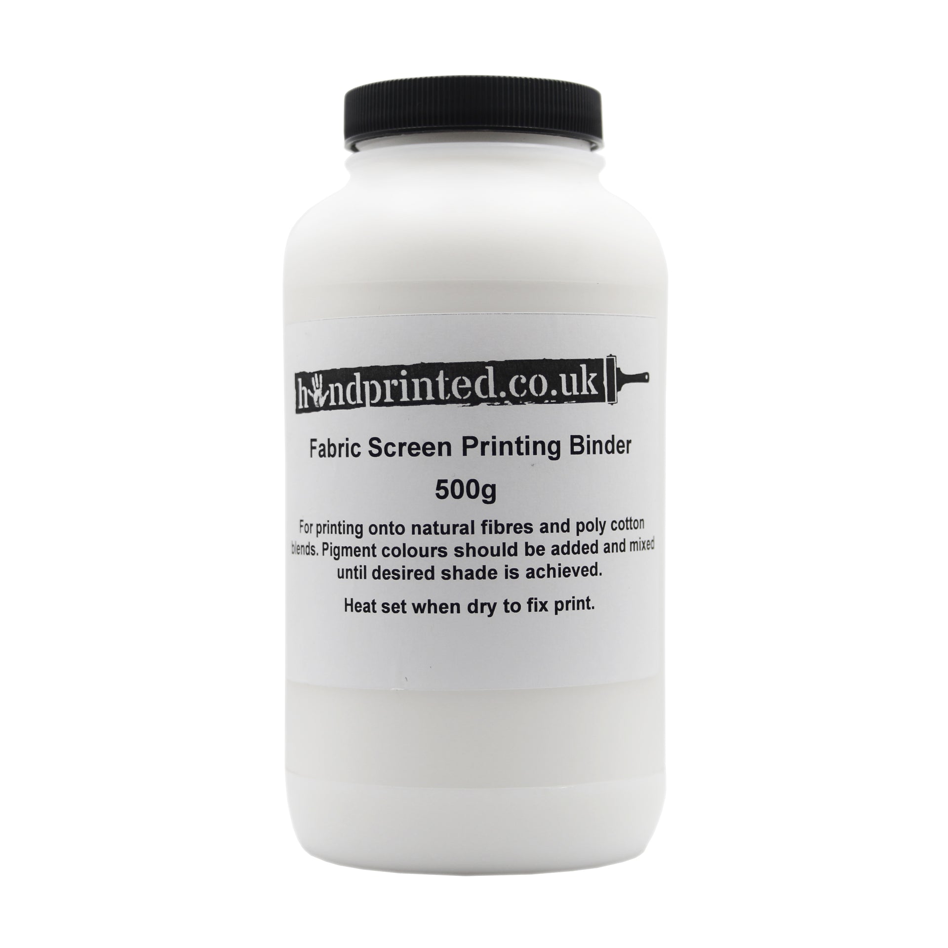 High quality screen printing binder for use on natural fibres and poly cotton blends. Once fixed (by ironing or baking) it can be machine washed at 40'c. It provides a soft handle and a high yield with good all round fastness. Mix with pigment colours. Available in three sizes 500g, 1kg and 5kg.