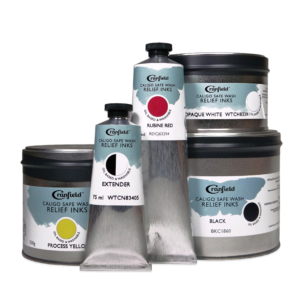 The new soft shades - Sage Green, Mustard Yellow, Powder Blue, Peach, Pale Violet and Soft Pink - are available in 75ml tubes. These colours have been chosen to simplify the life of the printmaker by providing popular shades often mixed in the studio. Also available as a boxed set of 6.