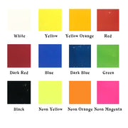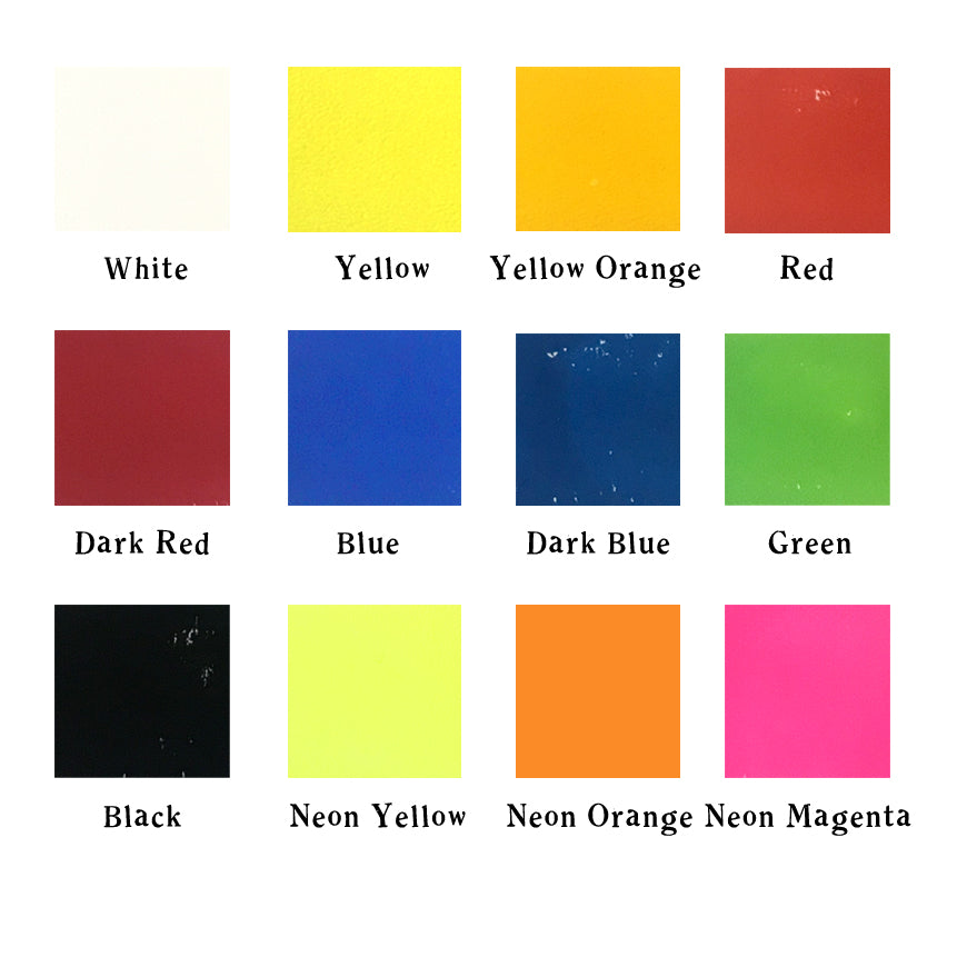 Blue, Neon Yellow, Neon Orange and Neon Magenta are transparent