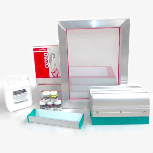 These kits are specially put together for schools. Available as a set for either printing on paper or fabric. Use with paper stencils or choose the School Photo Emulsion Screen Printing Kits to be able to transfer an image onto the screen using a light source.