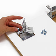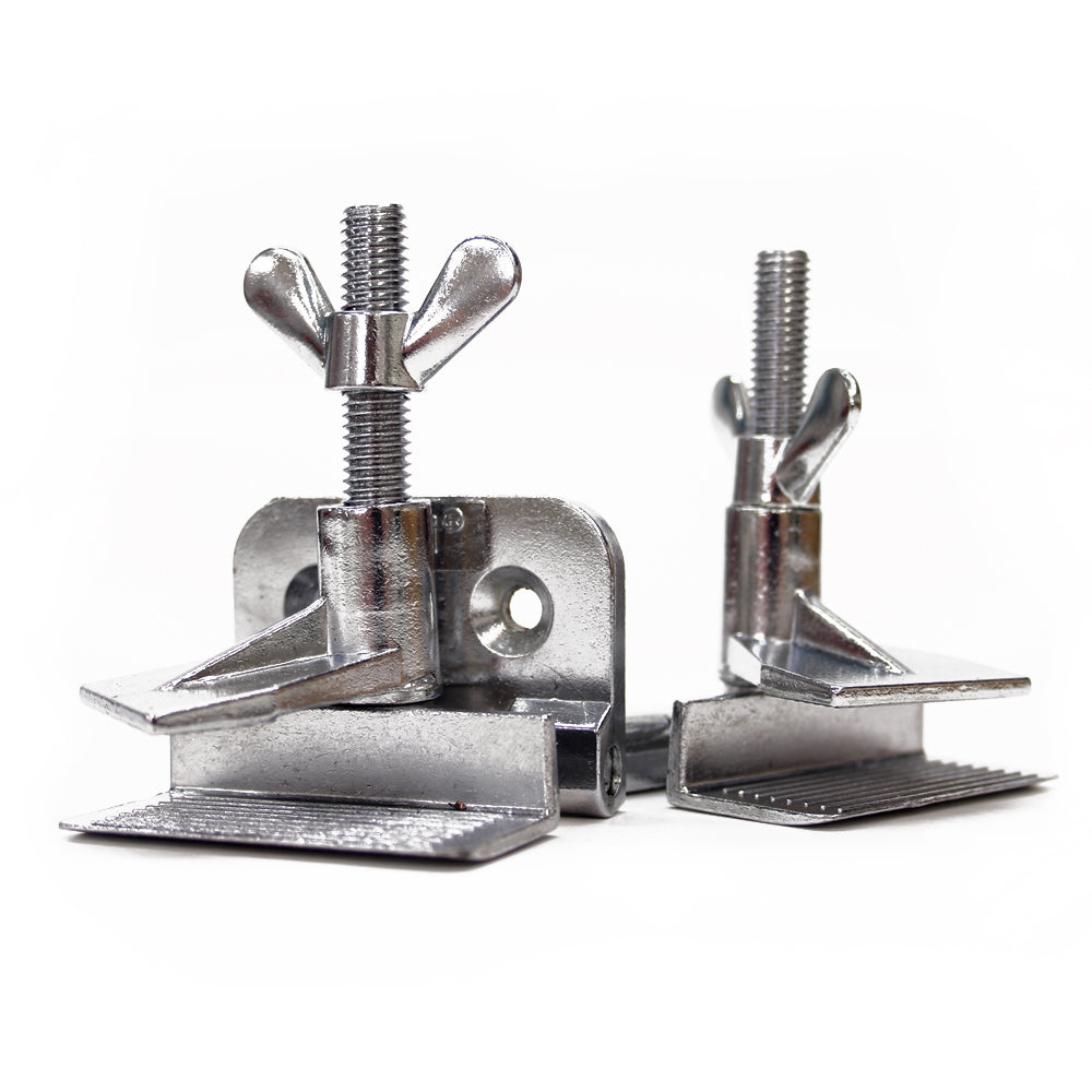 The clamps feature two holes that you screw directly into your workbench or board and large thumb screws to secure your frame.