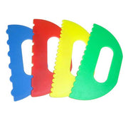 Four scrapers which can be used to create patterns in the paint on Gelli plates. The scrapers teeth vary so each one can be used to create different patterns.