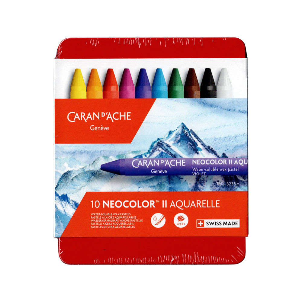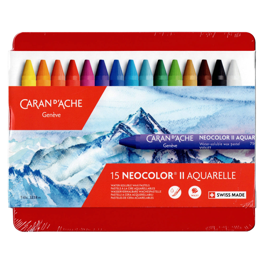 Caran D'Ache Neocolor II Aquarelle. Available in a set of 10 or 15 colours.